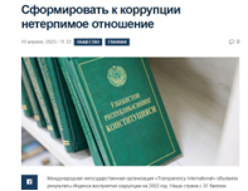 Популярное информационное агентство Таджикистана «Avesta» опубликовало статью ректора Чирчикского государственного педагогического университета профессора, заслуженного деятеля науки Узбекистана Гафурджана Мухамедова под заголовком «Сформировать к коррупции нетерпимое отношение».