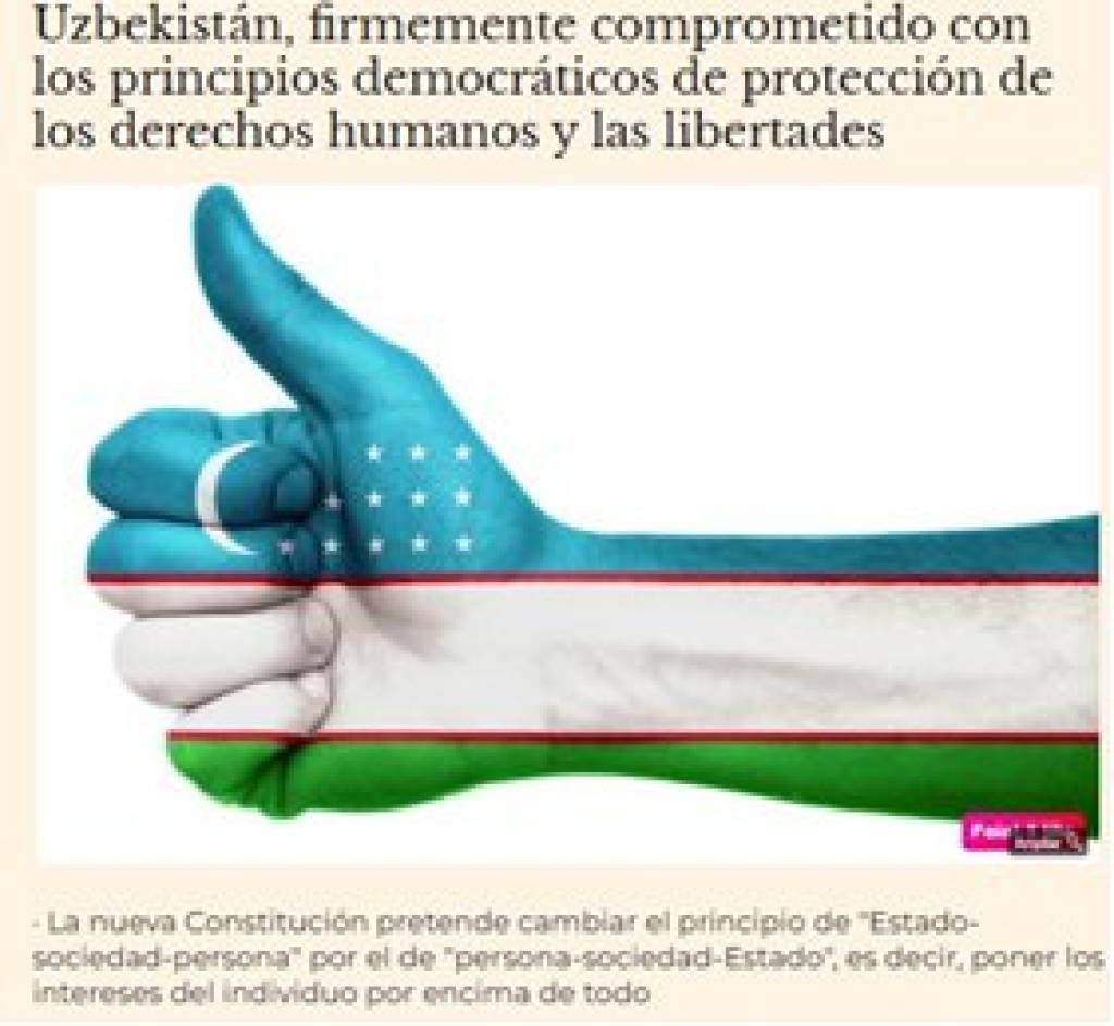 «Только в 2022 году ряд документов, подготовленных узбекской стороной, распространены как документы ООН, ‑ пишет испанское СМИ. ‑ Это, в частности, Бухарская декларация международного форума «Диалог деклараций», Ташкентская декларация международной конференции, посвященной десятой годовщине совместной реализации Глобальной контртеррористической стратегии ООН в Центральной Азии, документы Самаркандского саммита ШОС о диалоге и сотрудничестве во взаимосвязанном мире, а также о солидарности во имя общей безопасности и процветания». В заключение подводится итог, что Узбекистан избрал для себя путь построения демократического правового государства с социально ориентированной рыночной экономикой и формирования гражданского общества.