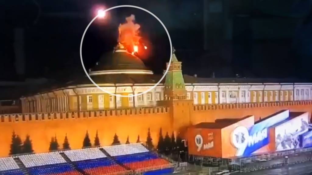 Об атаке двух беспилотников на Кремль пресс-служба президента сообщила 3 мая. В сообщении отмечалось, что военные и спецслужбы вывели их из строя. На кадрах с камер видеонаблюдения видно, что один из дронов взорвался у крыши Сенатского дворца, рядом с флагштоком флага России. Путина во время атаки в Кремле не было, сообщал Песков.