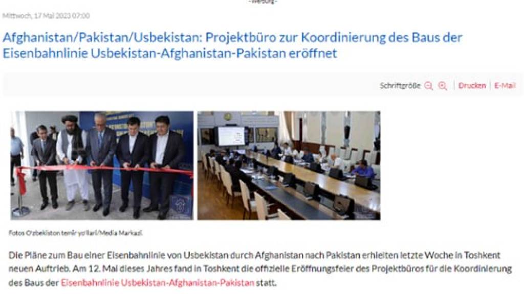 На сайте популярного немецкоязычного портала «Lok Report.de» опубликована статья, посвященная открытию в Ташкенте проектного офиса по координации строительства новой железнодорожной линии Узбекистан – Афганистан – Пакистан.