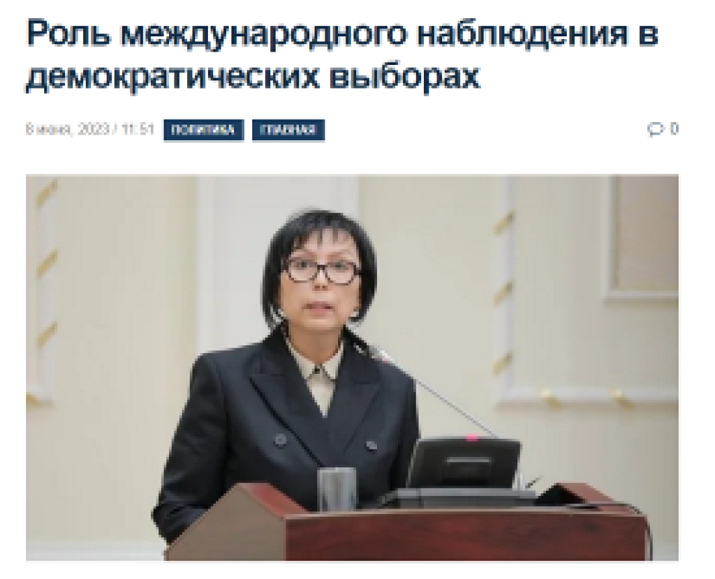 «Узбекистан, развивая свою избирательную систему, обеспечивает и защищает конституционные избирательные права и свободы своих граждан и участников выборов, и в то же время открыт для международного наблюдения не только за своими национальными выборами, но и референдумами, ‑ пишет член ЦИК. ‑ Таким образом наша страна реализует общепризнанные принципы и нормы международного права в сфере проведения демократических выборов, обеспечении и защите избирательных прав и свобод участников избирательного процесса. Динамика международного наблюдения за выборами в Узбекистане свидетельствует о том, что участие иностранных (международных) наблюдателей в последние годы увеличивается». В статье отмечается, что выборы в Узбекистане проходят в условиях радикальных перемен и демократических реформ, формируется новая политическая среда, и международное сообщество уделяет этим изменениям все больше внимания.