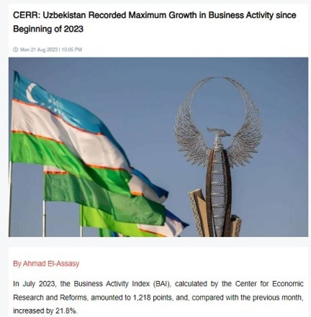 На электронном портале египетского информационного агентства «Сада аль-Балад» в сотрудничестве с журналистом Мухаммадом Вади опубликована статья под заголовком «ЦЭИР: В Узбекистане отмечен максимальный с начала года рост деловой активности с начала 2023 года».