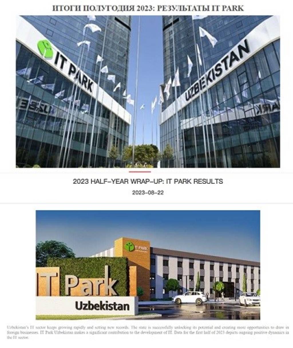 В первой половине 2023 года 45% доли экспорта приходился на США, 14% – на Великобританию, 8% – на страны ЕС, 33% – на такие страны, как Сингапур, Объединенные Арабские Эмираты, Швеция, Корея, Канада. По итогам первой половины текущего года ожидается, что к концу 2023 года общий объем экспорта ИТ достигнет 300 миллионов долларов США. По итогам первого полугодия 2023 года количество резидентов в IT Park достигло 1424 компании. Из них 986 зарегистрированы в Ташкенте, 438 – в регионах страны, 296 резидентов являются образовательными компаниями, а количество компаний с участием иностранного капитала составило 213, - пишет «Swift News». – За первое полугодие число экспортно-ориентированных компаний-резидентов IT Park достигло 442, что в 2,2 раза больше, чем за предыдущий год». В ближайших планах IT Park расширение видов деятельности для резидентов, куда войдут компании из таких сфер как креативная экономика, киберспорт, акселераторы. Также организация намерена открыть представительства в странах Ближнего Востока и Юго-Восточной Азии. IT Park также намерен привлечь региональные штаб-квартиры крупнейших корпораций в Узбекистан, резюмирует «Swift News».