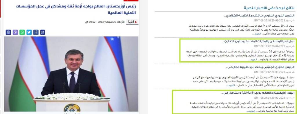 В частности, информационные агентства Египта «MENA» и «Biden Central» опубликовали статьи под заголовком «Президент Узбекистана: Мир столкнулся с кризисом доверия и проблемами в работе институтов глобальной безопасности» и «Байден обсудил с лидерами пяти стран Центральной Азии (5+1) группу различных вопросов».