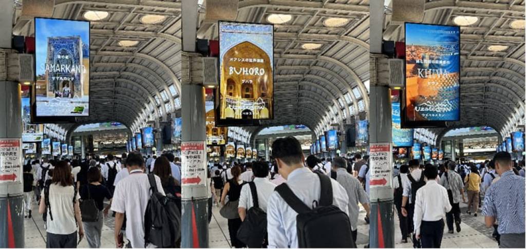 15-секундный видеоролик и картинка были размещены на 44 мониторах общим размером 75 дюймов в главном фойе станции. Для широкого показа турпотенциала Узбекистана были подготовлены видеоролики на тему «Узбекистан – жемчужина Шелкового пути» и показаны исторические объекты городов Самарканда, Бухары и Хивы.