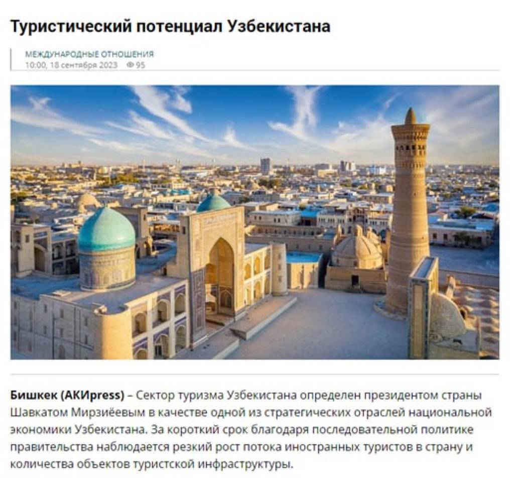 Популярное информационное агентство Кыргызстана «АКИpress» разместило статью под заголовком «Туристический потенциал Узбекистана».