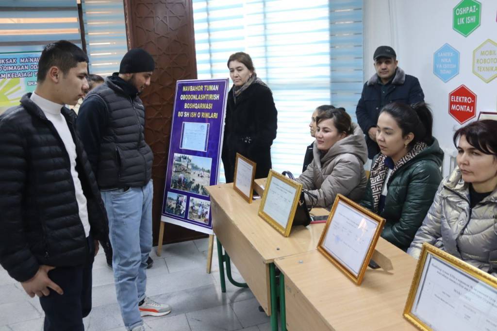 Unda 50 dan ortiq tashkilot, korxona va muassasalar 126 ta, 12 ta xususiy sektor 142 ta bo‘sh ish o‘rinlari bilan ishtirok etdi. Ularning 101 tasi oliy ma’lumotli, 46 tasi o‘rta-maxsus ma’lumotli va 113 tasi mutaxassislik talab etilmaydigan bo‘sh ish o‘rinlari xisoblanadi.