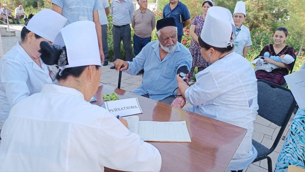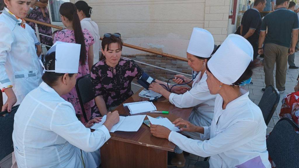 Unda mobil brigada, UZI, EKG, sayyor mammografiya, mobil ko‘zni tekshiruv apparatlari jalb etilib, jami 1474 nafar fuqaro tibbiy ko‘rikdan o‘tkazildi. Ularning bir nafariga respublika bolalar milliy tibbiyot markaziga, bir nafar fuqaroga viloyat ko‘p tarmoqli tibbiyot markazi kardiologiya bo‘limiga va 6 nafariga tuman markaziy shifoxonasi bo‘limlarida davolanish uchun yullanma berildi. 312 nafar fuqaro tuman ko‘p tarmoqli markaziy poliklinikasida davolanishga tavsiya qilindi.