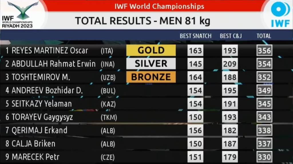 Aytish lozim, jahon chempionatining 81 kilogramm og‘irlikdagi ishtirokchilar orasida oltin medalni qo‘lga kiritgan Oskara Reyes asli kubalik sportchi bo‘lib, hozirda Italiya sharafini himoya qilib kelmoqda. Musobaqada 2-o‘rindan joy olgan indoneziyalik Raxmat Ervin o‘tgan yili dekabr oyida Kolumbiyada o‘tgan jahon chempionatida 73 kilogramm og‘irlikda oltin medalni qo‘lga kiritgan edi. Bu safar vaznini bir pog‘ona ko‘targan holda kumush medal bilan kifoyalandi. Aynan ushbu sportchi Muhammadqodir uchun Osiyo o‘yinlaridagi asosiy raqiblardan biri bo‘lishi ehtimoldan yiroq emas.