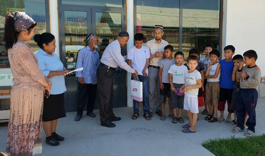 Детей поздравили хоким Касансайского района Дильмурад Кадыров и депутат нижней палаты парламента Анвархон Темиров, председатель районного Совета партии, депутат районного Кенгаша народных депутатов Турсунбай Солиев. Затем они навестили инвалидов 2-й группы Исломжона Алиджанова, Асадбека Гофурова и Жасурбека Исраилова.
