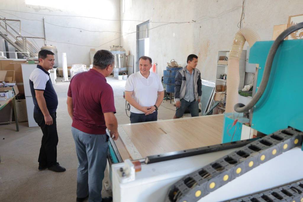 Deputatlar Mirzaobod tumanida ham bo‘lib, sanoat va tadbirkorlikni rivojlantirish, aholi bandligini ta’minlash, kuz-qish mavsumiga tayyorgarlik borasida amalga oshirilayotgan ishlar bilan tanishdilar.