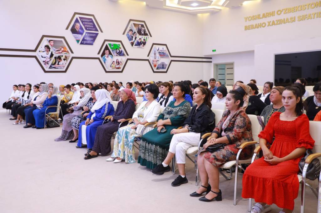 Бугун вилоят “Ёшлар маркази”да “Янги ҳаёт учун, Янги Ўзбекистон учун!” номли ғоя асосида “Аёл бахтли бўлса, оила бахтли бўлади, оила бахтли бўлса, жамият бахтли бўлади!” шиори остида маданий-маърифий тадбир ташкил қилинди.