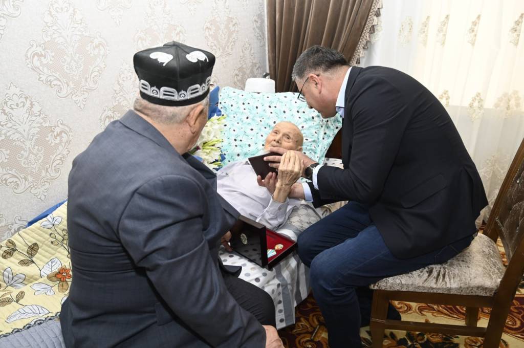 Вилоят ҳокими Акмалжон Маҳмудалиев 101 ёшни қаршилаган Абди бобо Алиқуловни йўқлаб борди. Президентимиз фармони билан янгиерлик меҳнат фахрийси Абди бобо Алиқулов ҳам “Шуҳрат” медали билан тақдирланди. У кўп йиллар таълим тизимида самарали фаолият юритган. Бугунги кунда 19 нафар невара ва 10 нафар эваранинг суюкли бобосидир. Вилоят ҳокими Абди бобони Мустақиллигимизнинг 32 йиллик байрами билан қутлаб унинг кўксига юксак мукофот “Шуҳрат” медалини тақиб қўйди.