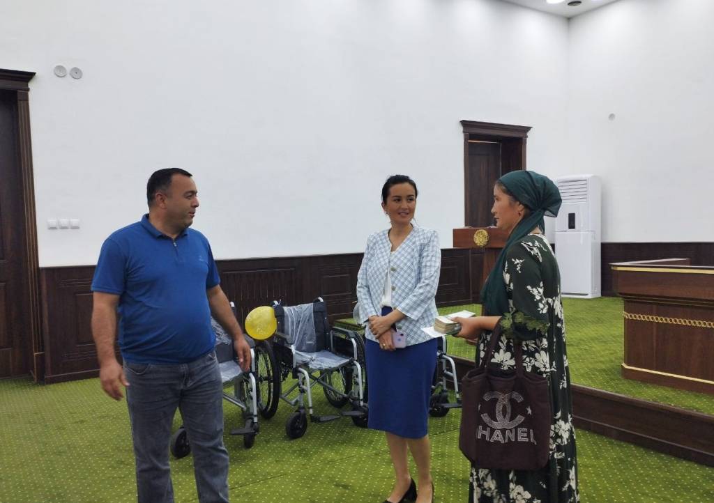 Ўзбекистон Республикаси Мустақиллигининг 32 йиллиги арафасида Ховос туманида “Аёллар дафтари”да рўйхатда турувчи ва ижтимоий ҳимояга муҳтож хотин-қизларга бир марталик моддий ёрдам, ногиронлик аравачаси, қулоқ эшитиш мосламалари тарқатилди.