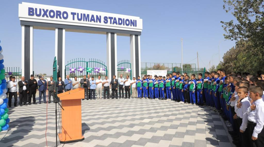 “Замона монтаж таъмирлаш қурилиш” МЧЖ томонидан қурилган туман марказий стадионининг тантанали очилиш маросимида Ёшлар сиёсати ва спорт вазирлиги бошқарма бошлиғи Фарҳод Турдиев, Бухоро тумани ҳокими вазифасини бажарувчи Ҳалимжон Сафаров, Ўзбекистон дзюдо федерацияси раиси ўринбосари Шуҳрат Очилов ҳамда бошқа мутасадди раҳбарлар қатнашди. Маросимда сўзга чиққанлар мамлакатимизда ёшлар, аёллар ва, айниқса, болаларни спортга жалб этиш, уларнинг спорт турлари билан мунтазам шуғулланиши учун замонавий шароитлар яратиш борасида изчил ишлар амалга оширилаётганини таъкидлашди.