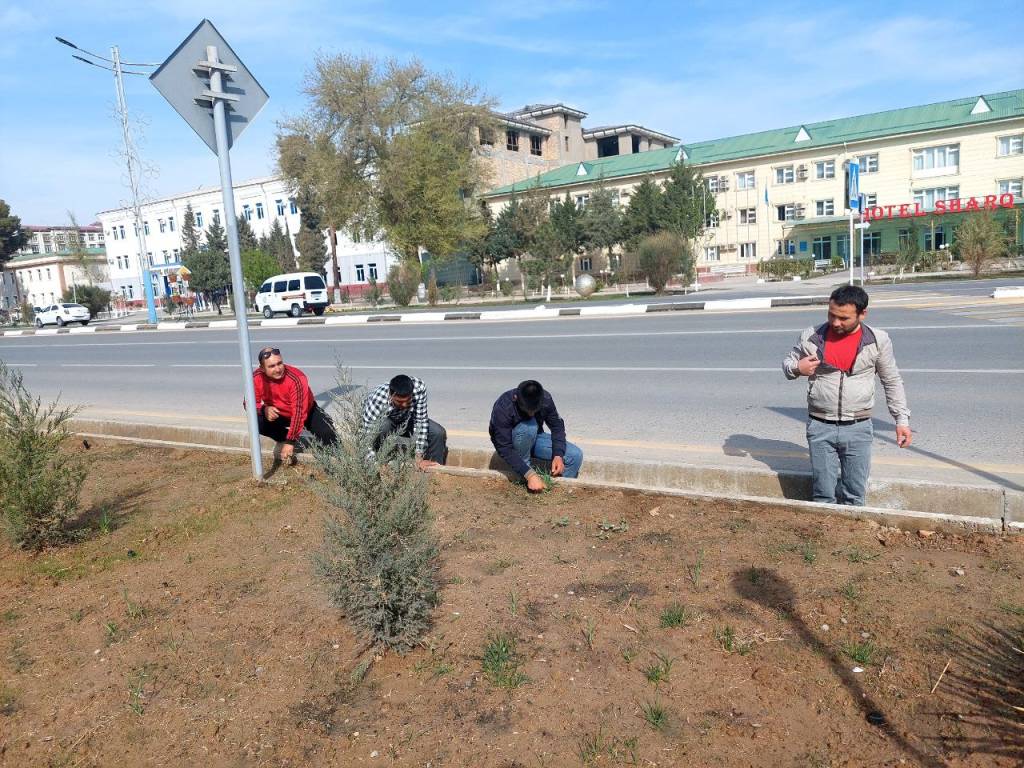 Erta tongdan vohaning olis va chekka hududlarida ham “Mahallamga 10 tup daraxt – mening tuhfam” shiori ostida ko‘chat ekish, qarovsiz hududlarni ko‘kalamzorlashtirish, mahallalar, ko‘p qavatli turar – joy va yakka tartibdagi uy – joylar atrofi, ko‘cha va xiyobonlar, muqaddas ziyoratgoh va qabristonlar, bolalar maydonchalarini tartibga keltirish uyushqoqlik bilan boshlandi.