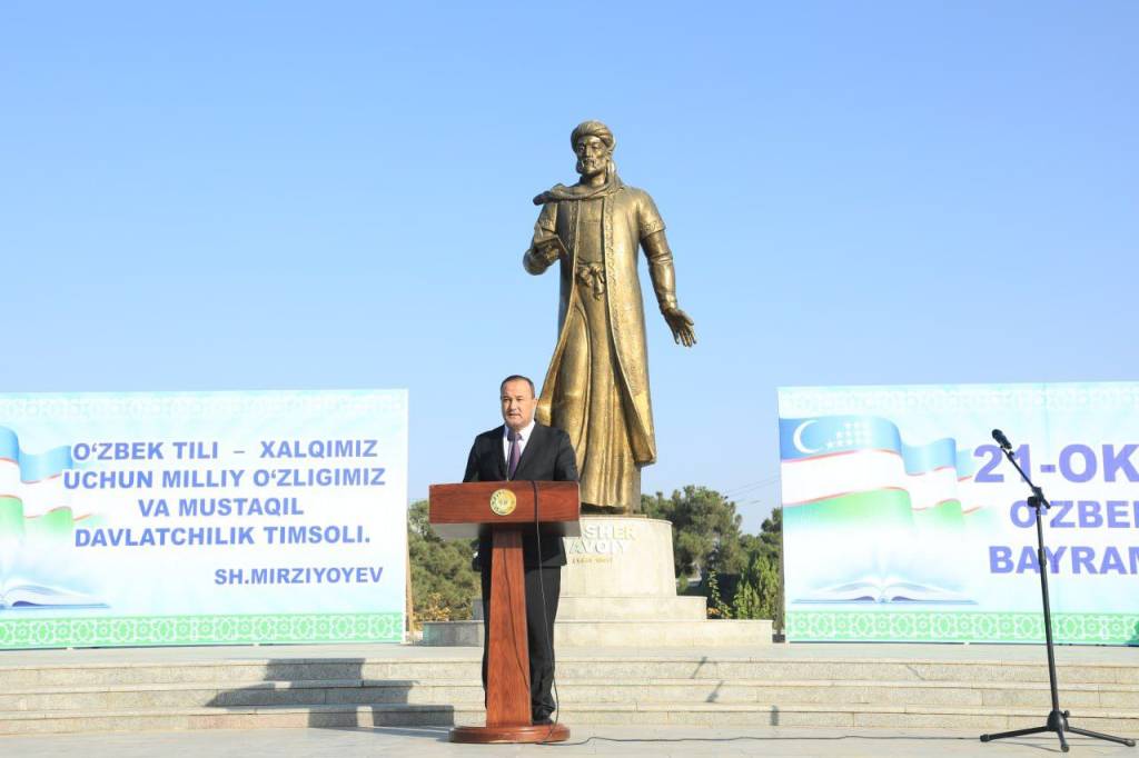– Президентимиз ташаббуси билан 21 октябрь – Ўзбек тили байрами куни сифатида белгилангани ва Ўзбек тилига Давлат тили мақоми берилган куннинг катта шодиёна сифатида нишонланиши мамлакатимизда она тилимизга кўрсатилаётган беқиёс эътиборнинг амалдаги ифодасидир, – деди Ўзбекистон Ёзувчилар уюшмаси вилоят бўлими раҳбари Менгнор Олламуродов. – Бу кун эндиликда нафақат юртимиз, балки дунёда нишонланмоқда, десак муболаға бўлмайди. Байрам тадбирлари буюк бобокалонимиз Навоий ҳайкали пойига гуллар қўйишдан бошланиши ҳам барчамизга бирдек фахр улашади. Она тилимизни улуғлаган сўз мулкининг султони шахсияти ва нафис ижодига юксак эҳтиром кўрсатилаётгани қалбларга ўзгача қувонч бағишлайди. Аслида миллатимиз улуғланадиган бу улуғ айём бир кунлик байрам эмас, балки асрлар давомида она тилимизнинг сайқал топиб, сўз бойлиги ортиб бораётгани, тилимизга эътибор кучайиб, дунё минбарларида янграётганининг ўзи биз учун катта шодиёнадир.