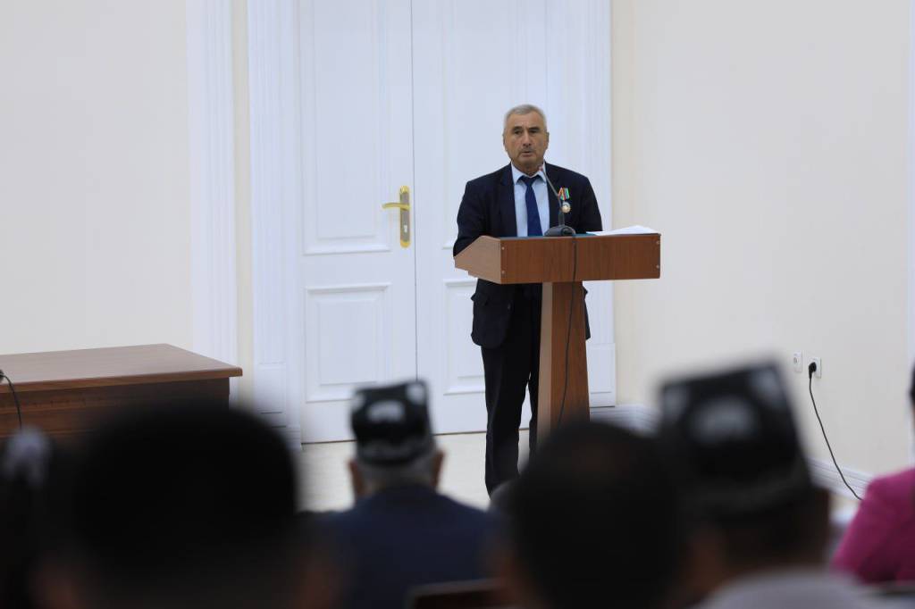 Вилоят ҳокими Улуғбек Қосимов йиғилганларни мустақиллигимизнинг 32 йиллик байрами билан муборакбод этди. Мукофотланганларни юксак орден ва медаллар билан самимий табриклади. Фахрий унвонлар, орден ва медалларни ўз эгаларига топширди.