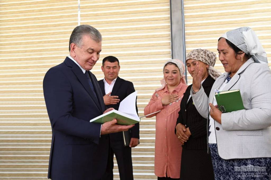 El Presidente Shavkat Mirziyoyev visitó el distrito de Oltiarik en la región de Ferganá.