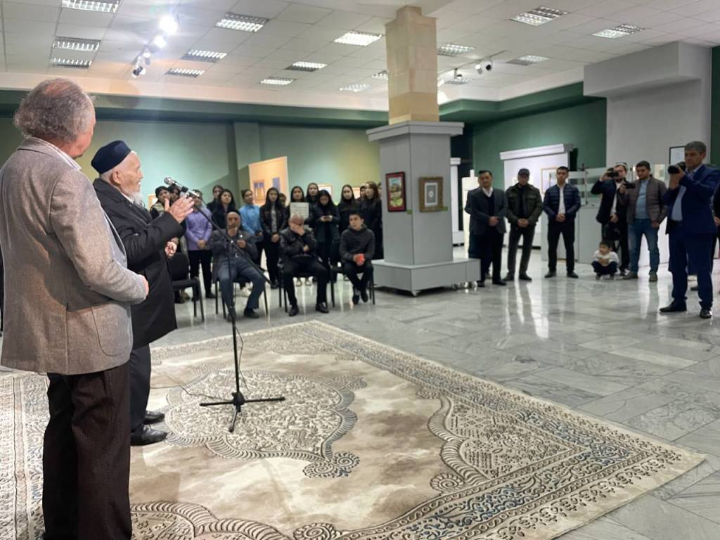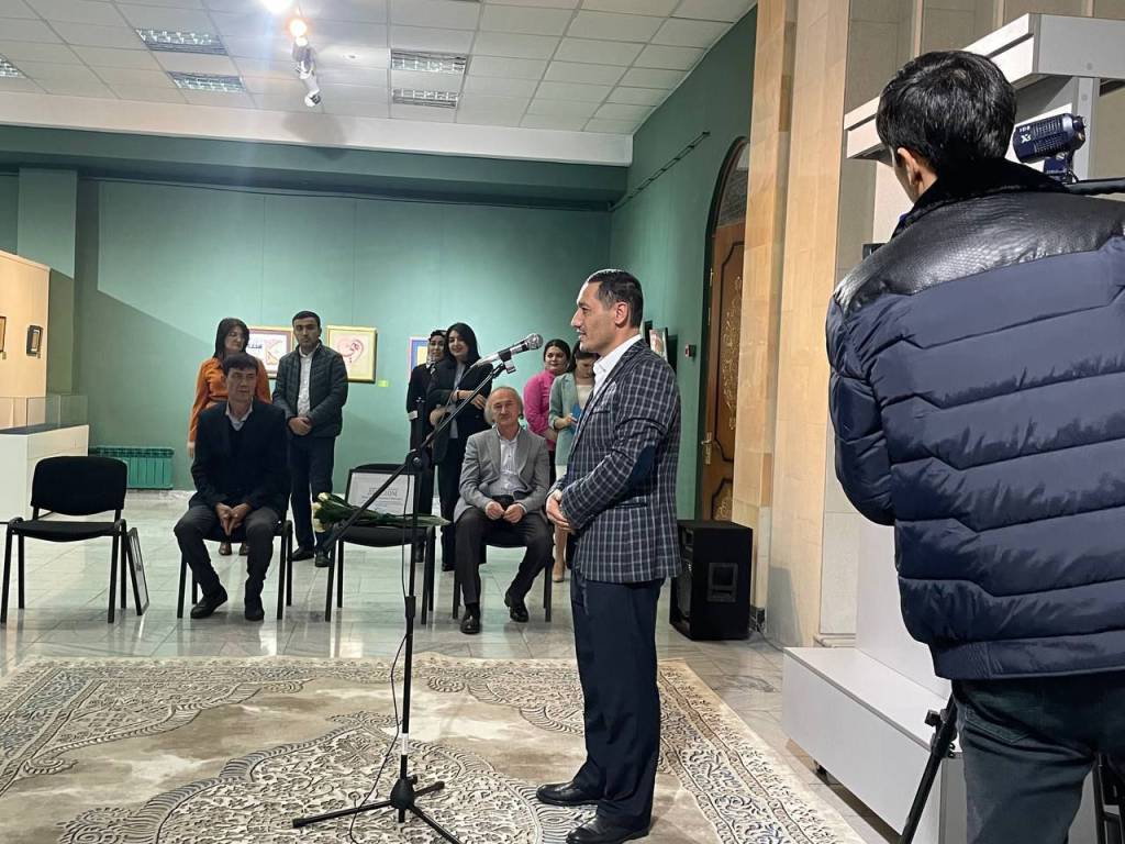 На выставке под названием “Фейз-уль-хаттат” представлены каллиграфические работы члена Академии художеств Узбекистана Низамджана Турсуналиева и его учеников.