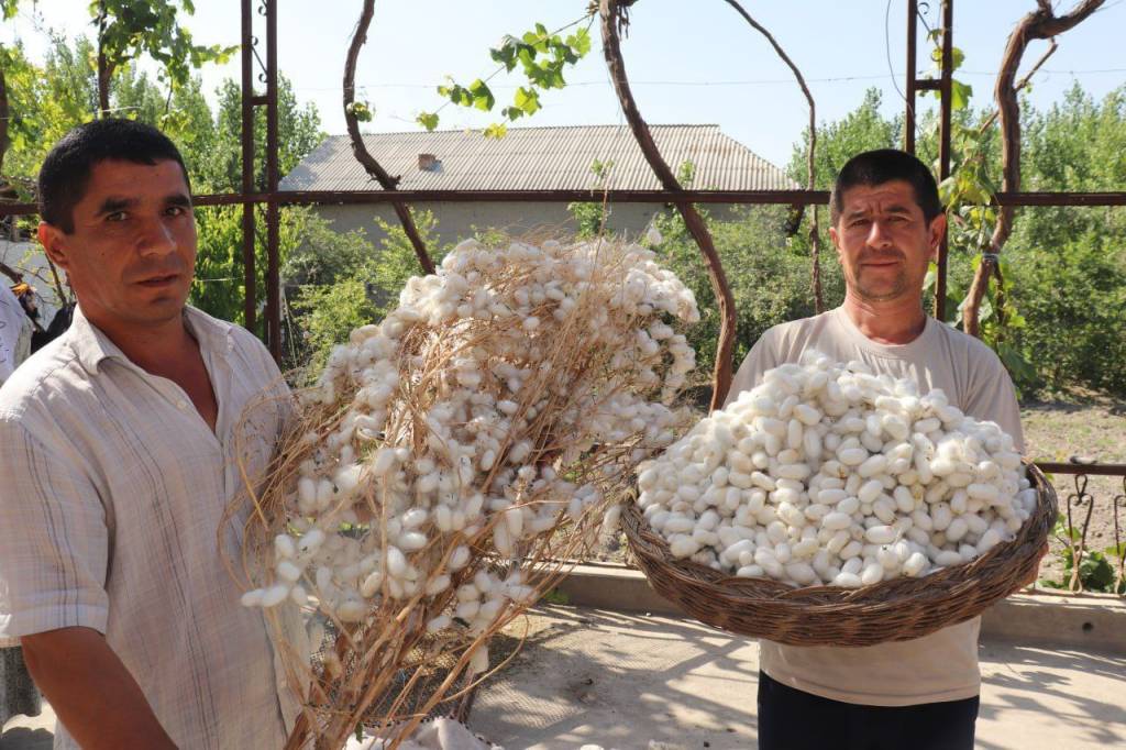 “Ёзёвон агропилла” масъулияти чекланган жамияти билан пилла етиштириш бўйича шартнома тузиб, янги услубда иш ташкил қилган 226 та фермер хўжаликлари ва 600 нафардан зиёд касаначилар томонидан шартномада белгиланган 118 тонна ўрнига 119,7 тонна “кумуш тола” топширилди. Туманда бу йилги мавсумда 2 минг 34 қути ипак қурти асосан инновацион усулда, яъни плёнка остида парваришланди. Пилла етиштиришнинг плёнка усули ўзига хос афзалликларга эга. Бунда намлик яхши сақлангани сабаб барг озуқаси исроф бўлмайди. Энг асосийси, анъанавий усулга нисбатан пилла тез етилади.