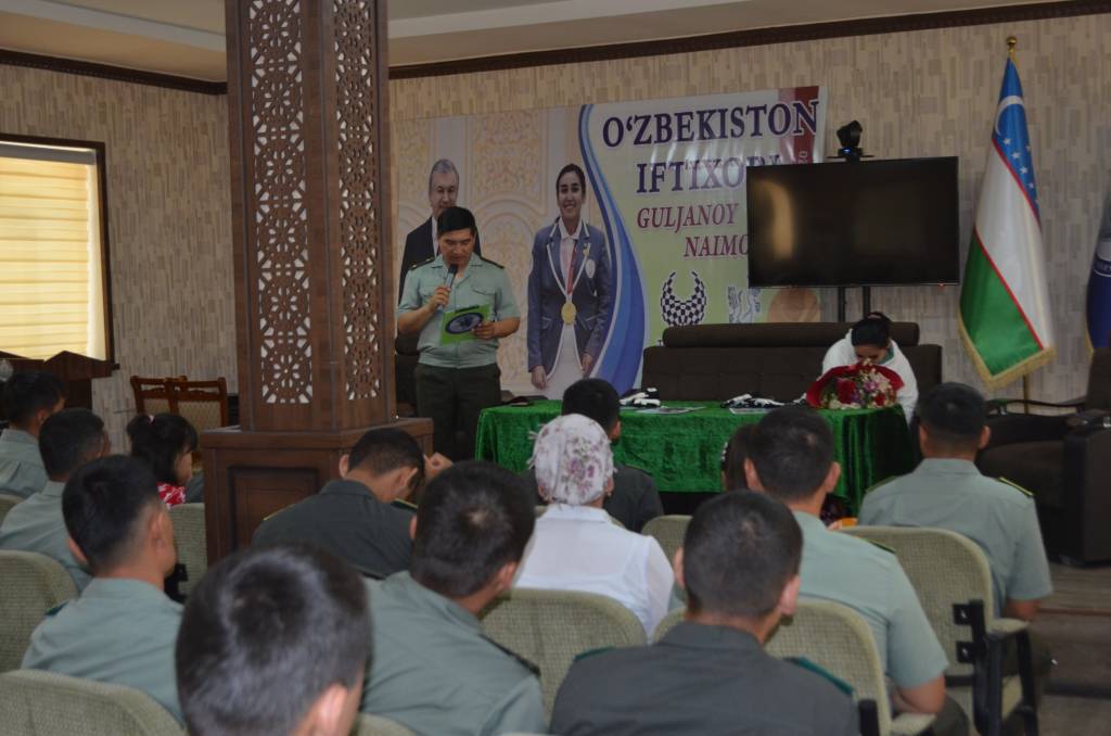 ДХХ Чегара қўшинларига қарашли Сурхондарё вилояти Узун ва Сариосиё туманларида жойлашган ҳарбий қисмларда 2021 йилда Токио шаҳрида бўлиб ўтган Паралимпия ўйинларида зафар қучиб, олтин медални қўлга киритган, “Ўзбекистон ифтихори” унвони соҳибаси Гулжаной Наимова билан давра суҳбати ташкил этилди.