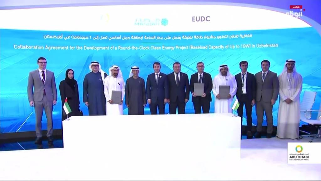 Форум доирасида Ўзбекистон Республикаси Энергетика вазирлиги, “Masdar” ҳамда “Emirates Utilities Development Company” (EUDC) ўртасида Ўзбекистонда 24/7 режимида ишлайдиган, узлуксиз равишда 1 гигаваттгача базавий юклама қувватини таъминлайдиган лойиҳани ишлаб чиқиш бўйича ҳамкорлик шартномаси имзоланди.
