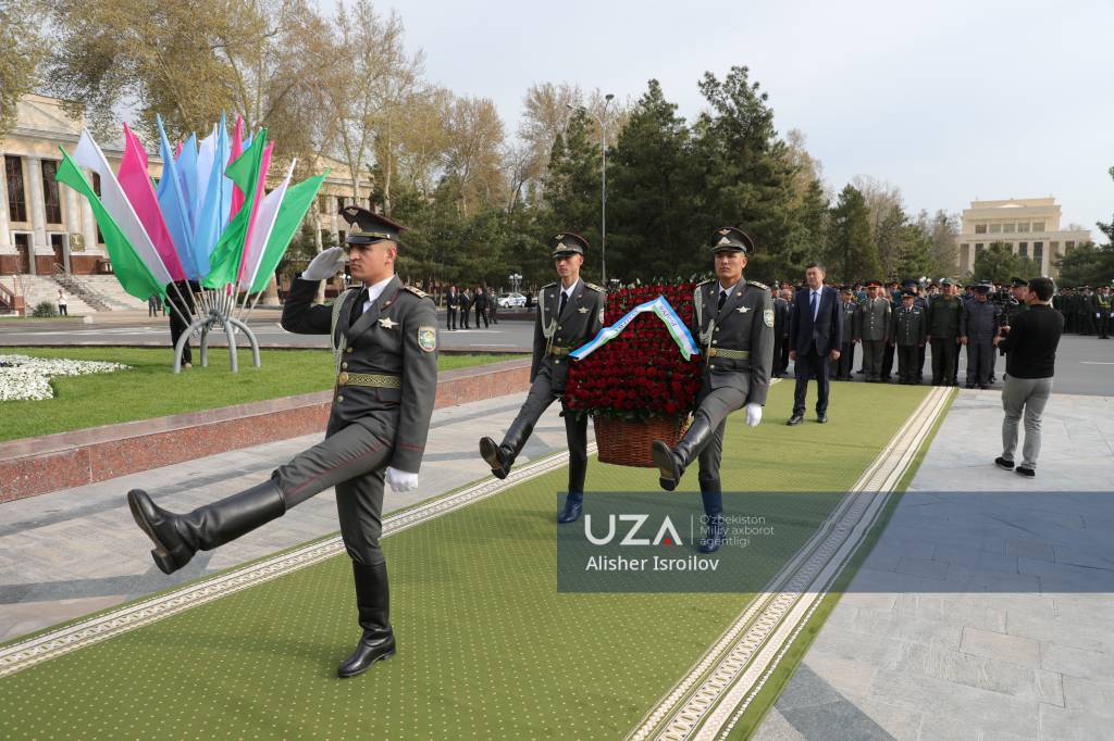 Участники мероприятия, представители хокимията области, правоохранительных органов, управлений, организаций и образовательных учреждений возложили цветы к подножию памятника Амиру Темуру.