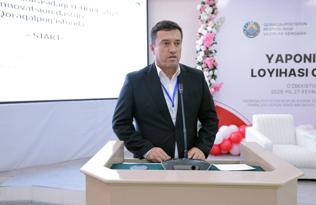 В Нукусе состоялось мероприятие, посвященное запуску инновационной программы U-HOPE 2025 в рамках проекта Yori-I. В мероприятии приняли участие руководство правления АКБ «Банк развития бизнеса», Совета министров Республики Каракалпакстан, профессора Университета Ямагата (Япония), представители Программы развития ООН (ПРООН), местные предприниматели, менторы и общественность.