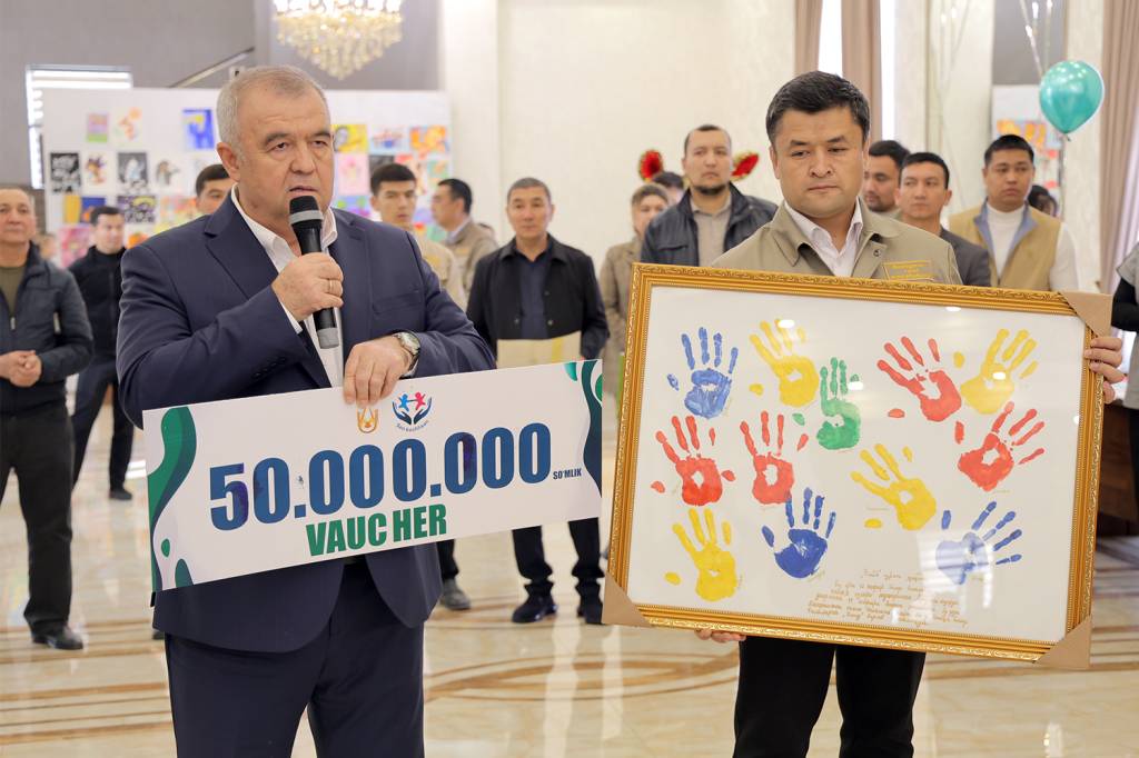 Особое внимание привлекла символическая картина, созданная детьми, которую АГМК приобрёл за рекордную сумму – 50 миллионов сумов. Трудовой коллектив комбината также активно участвовал в аукционе, внося свой вклад в общее дело.