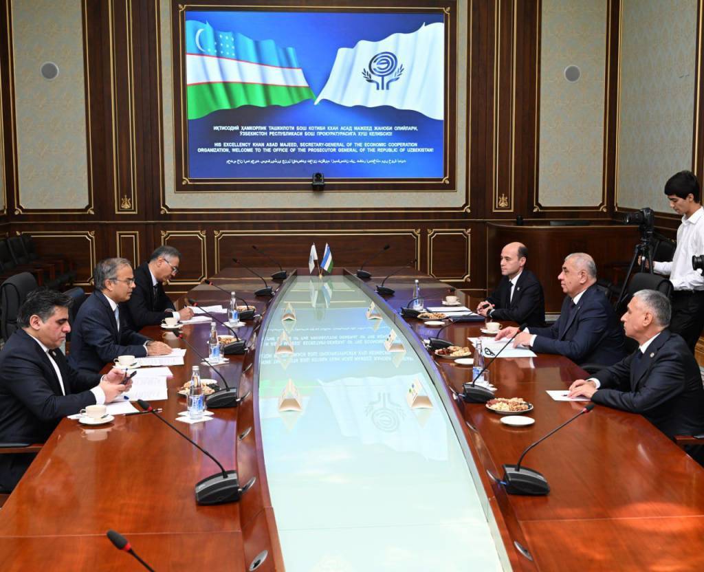 В рамках мероприятий Генеральный прокурор Узбекистана Нигматилла Юлдашев встретился с делегацией во главе с Генеральным секретарем ОЭС Асадом Маджидом Ханом.
