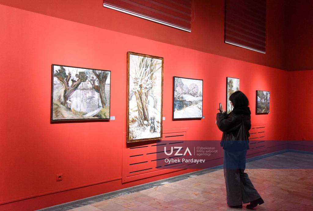 Кўргазмада рассомнинг 100 га яқин сара асарлари намойиш этилди.
