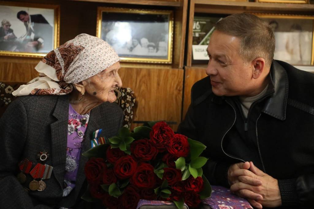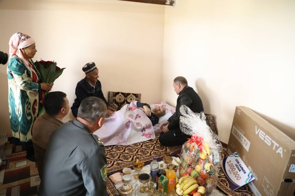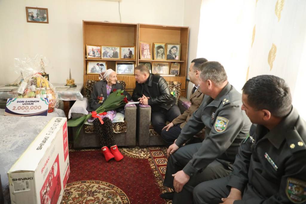 В связи с праздником Навруз хоким Навоийской области Нормат Турсунов, хоким Кызылтепинского района Бекзод Бобомуродов и другие ответственные лица посетили дома участников Второй мировой войны Рашиды ая Ишкуловой и Шукура бобо Хомитова.