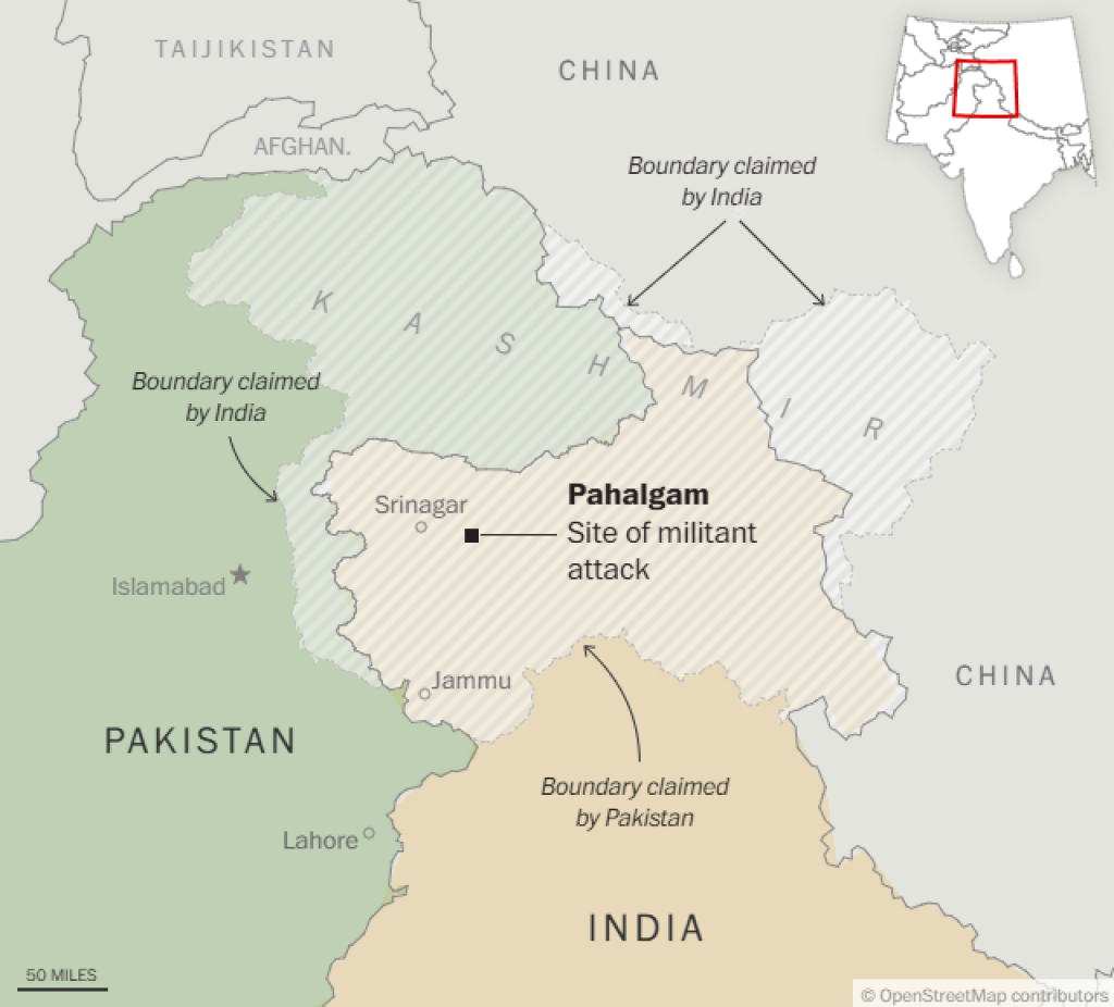 22 апреля 2025 г. в туристической зоне Пахалгам (индийский Кашмир) произошел вооруженный теракт, в результате которого погибли 26 человек. Индия обвинила пакистанские группировки и перешла к ответным мерам (приостановила действие водного договора, закрыла сухопутное сообщение и др.). В начале мая 2025 г. обе стороны обменялись ударами вдоль линии контроля, призывая международное сообщество не допустить масштабной войны.