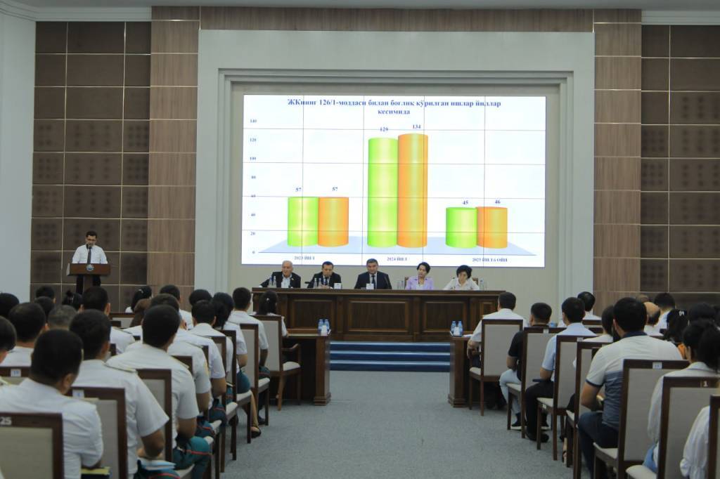 Выступившие подробно остановились на практике рассмотрения дел, связанных с семейным насилием, в судах, процессуальных действиях в органах дознания и следствия, достигнутых результатах и имеющихся недостатках, проводимой в махаллях работе по предупреждению правонарушений в сфере семейно-бытовых отношений и укреплению здоровой атмосферы в семьях.