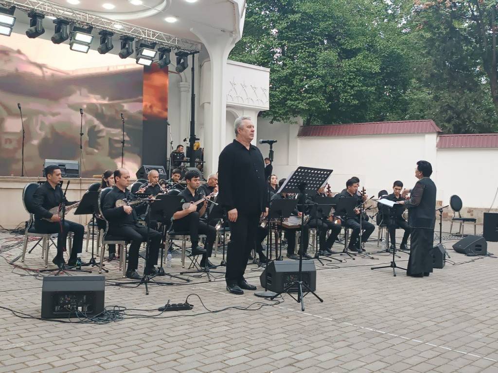 В концертной программе с участием Камерного оркестра национальных инструментов Государственной филармонии Узбекистана «Согдиана» звучали замечательные песни, которые воспевали мирные дни.