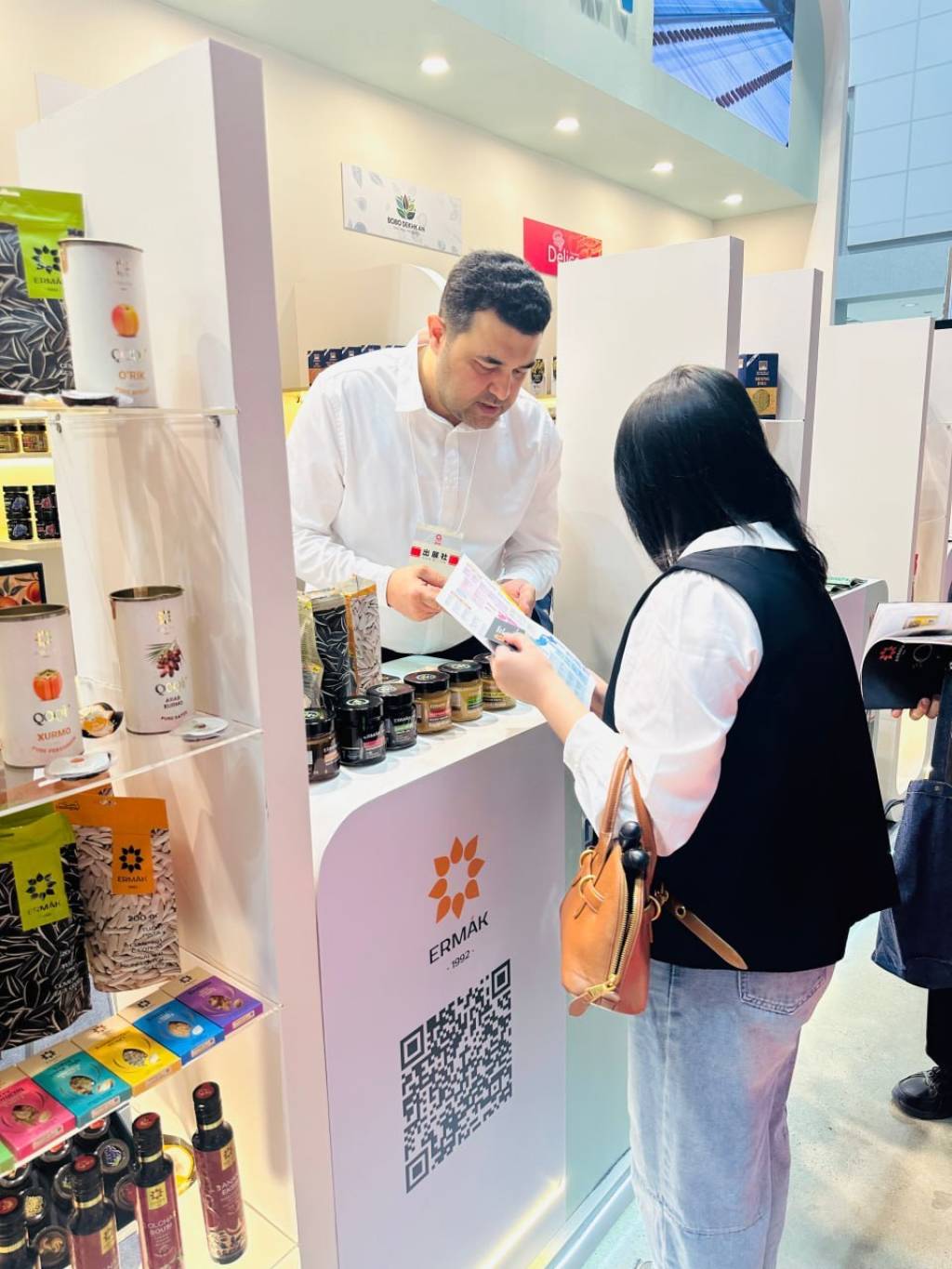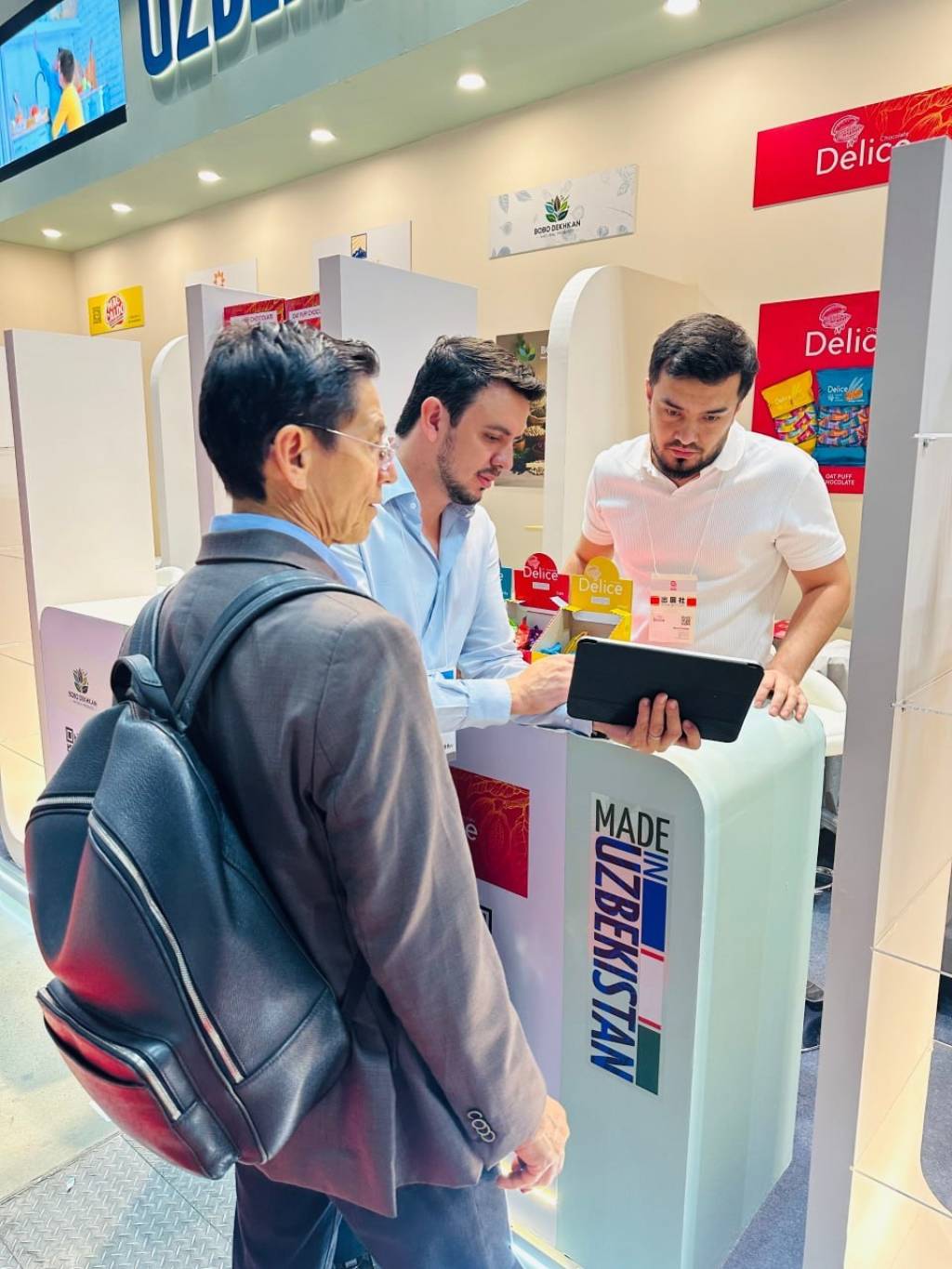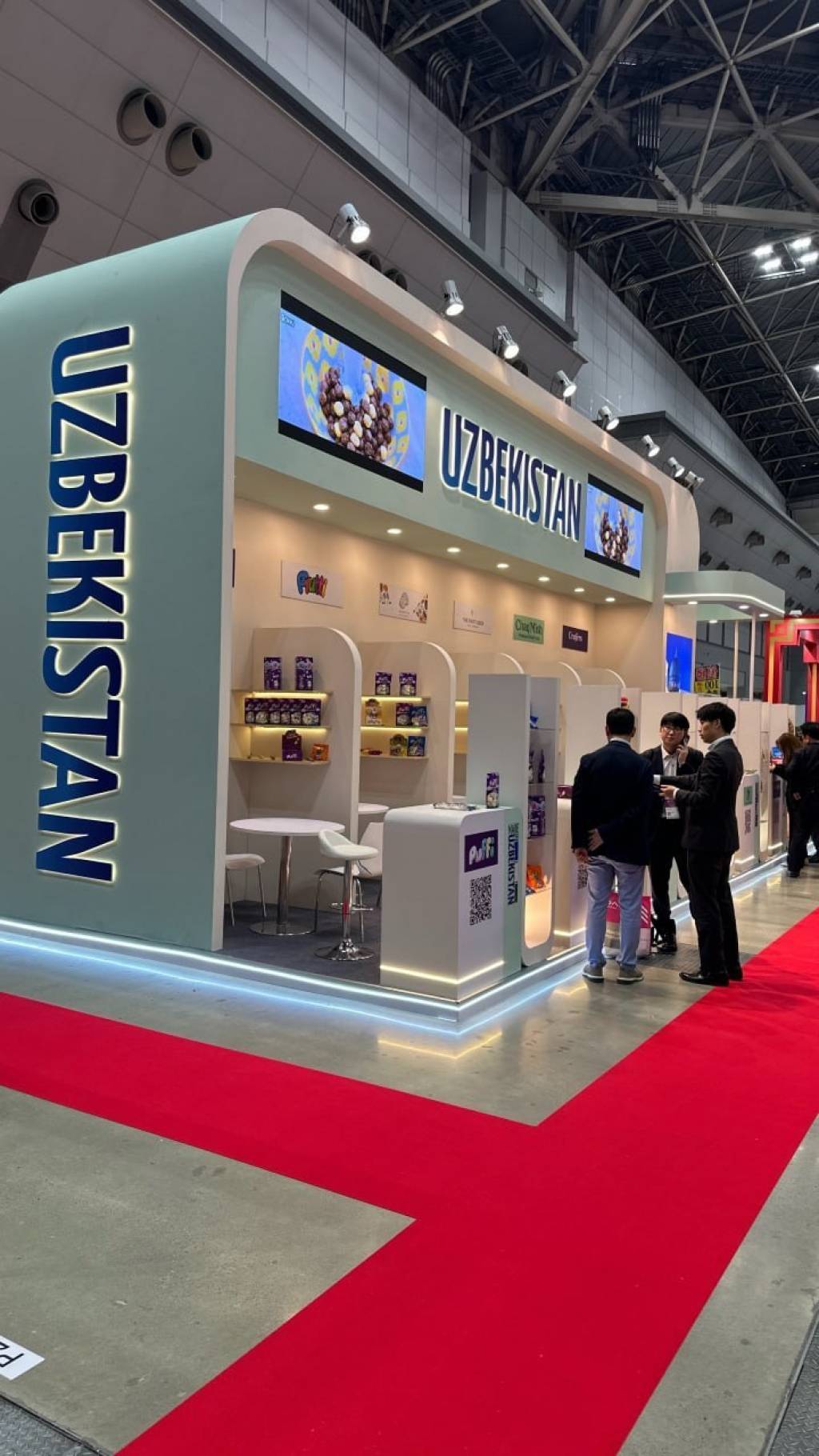 Жами 126 кв/м майдонда ташкил этилган “Made in Uzbekistan” миллий стендида 18 корхона томонидан миллий маҳсулотларимиз тақдим қилинган. Жумладан, сара қуритилган мева, табиий шарбат, зиравор ва қандолат маҳсулотлари нафақат маҳаллий, балки бутун Шарқий Осиё сармоядорларида жиддий қизиқиш уйғотмоқда.