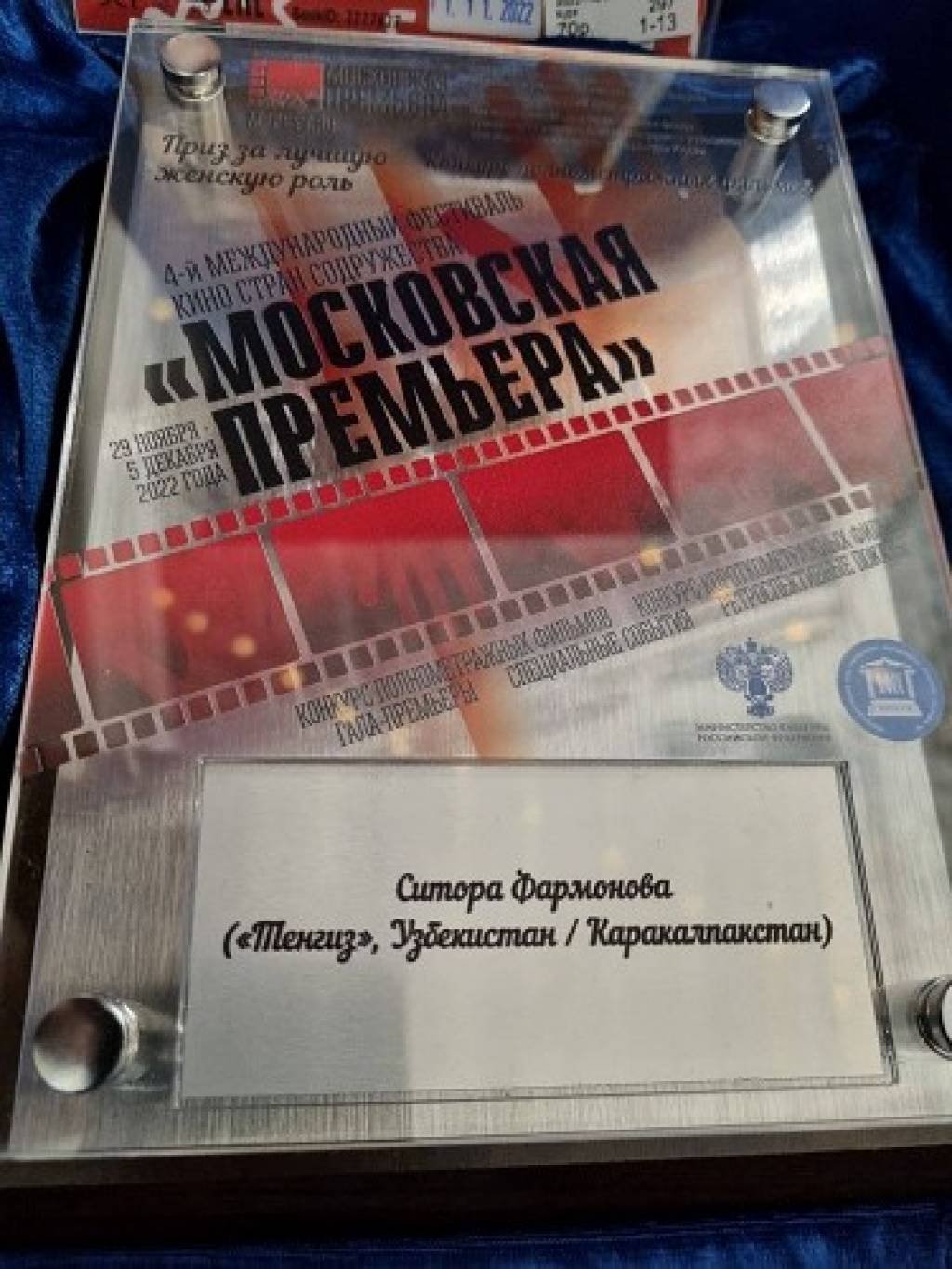 CentralAsia Media. На международном кинофестивале стран Содружества «Московская премьера» художественный фильм «Тенгиз» режиссёра Мансура Абдухаликова, снятый по заказу Агентства кинематографии, получил награду в номинации «Лучшая женская роль».