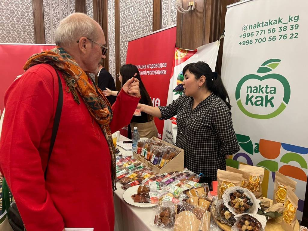 Более 20 крупных производителей представили сухофрукты, орехи, мясную продукцию, бобовые, национальные напитки, изделия из войлока. В этот перечень также вошли отечественные туроператоры, рассказавшие гостям о туристическом потенциале Кыргызстана.