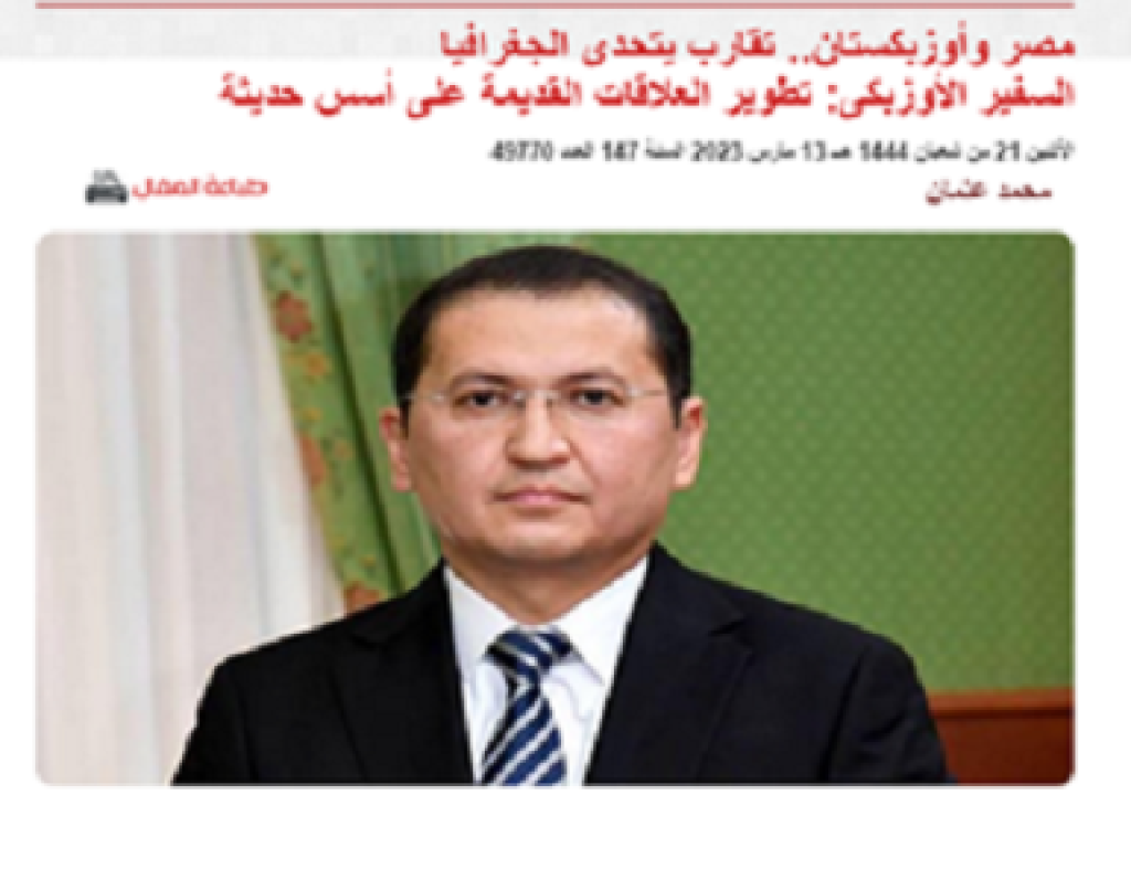 На странице ведущей египетской газеты «Аль-Ахрам» опубликована статья под заголовком “Египет и Узбекистан: сближение против географии”.