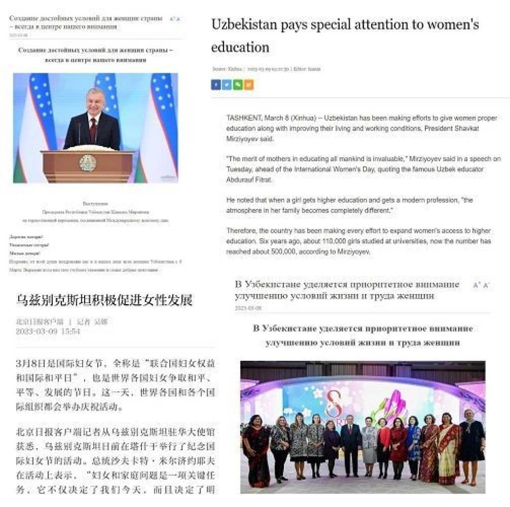 Ряд ведущих китайских СМИ - информационное агентство «Синьхуа», газеты «Жэньмин жибао» и «Beijing Daily», журналы «Diplomat magazine» и «Китай» - опубликовали статьи о приоритете гендерного равенства в Узбекистане.