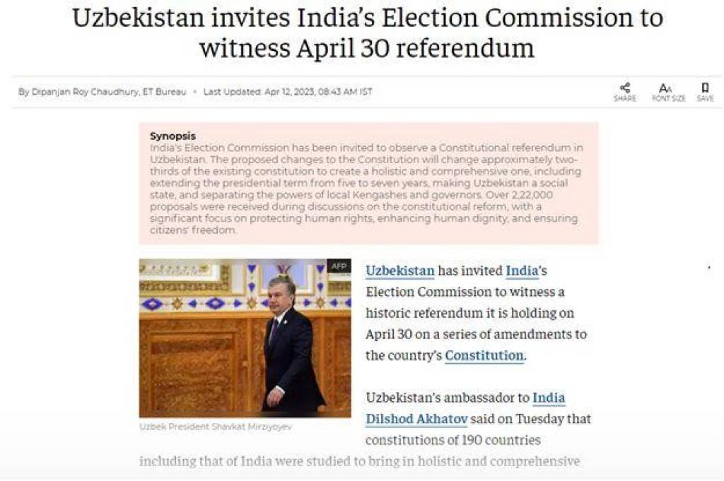 Журналист подчеркивает, что за последние годы под руководством Президента Шавката Мирзиёева во всех сферах жизни страны произошли значительные реформы, и конституционная реформа является составной частью этих изменений. В статье говорится, что предстоящий референдум направлен на изменение примерно двух третей части действующей Конституции Узбекистана и приводятся слова посла: «Наша Конституция будет целостной и всеобъемлющей и выведет Узбекистан на новый путь развития, прогресса и процветания».