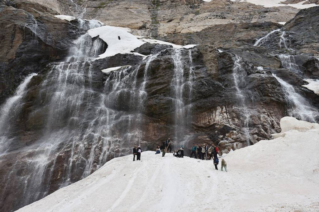 Участники экскурсионного тура отлично провели время, фотографируясь перед водопадами, у ледников, а также в долине, украшенной яркими цветами. Некоторые катались по снегу, используя пакеты.