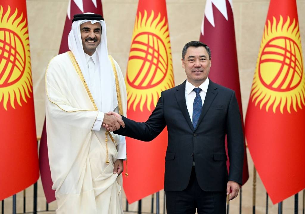 АА «Анадолу». В Бишкеке в государственной резиденции «Ала-Арча» состоялась встреча президента Садыра Жапарова с эмиром Катара шейхом Тамимом бин Хамад Аль Тани, передает агентство Кабар. Жапаров отметил, что визит эмира имеет большое историческое значение, поскольку является первым, имеющим статус государственного за 30 лет сотрудничества Кыргызстана с арабской страной.