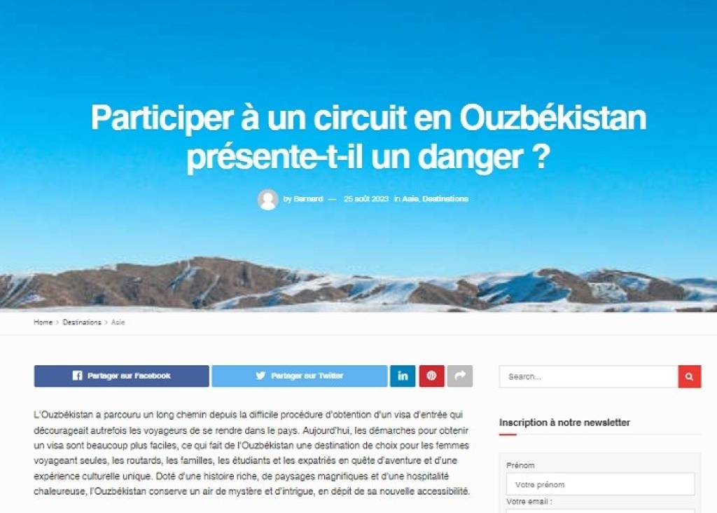 Во французском специализированном туристическом издании «infotravel.fr» опубликована развернутая статья «Какие преимущества имеются для организации туров по Узбекистану».