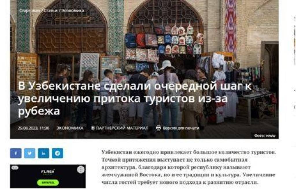 На популярном финансово-экономическом портале Кыргызстана «Akchabar.kg» опубликована статья под заголовком «В Узбекистане сделали очередной шаг к увеличению притока туристов из-за рубежа».