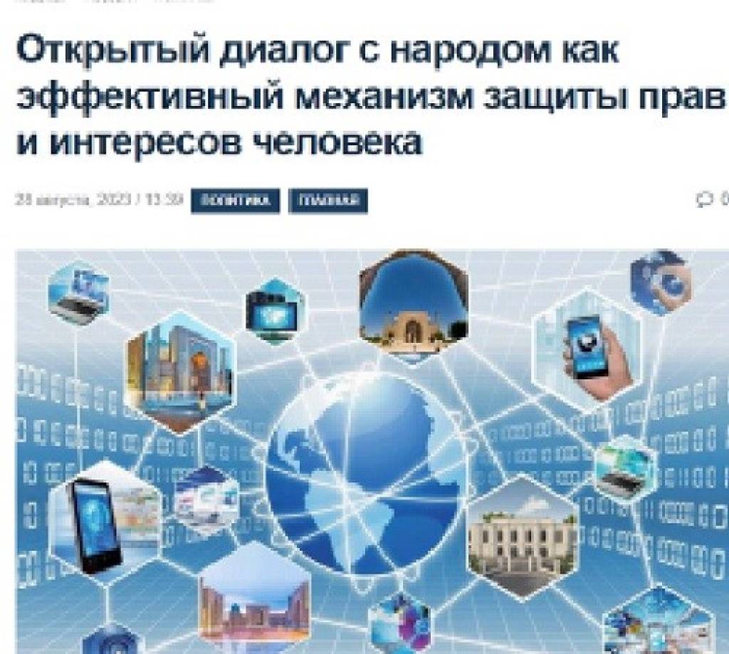 На сайте популярного в Таджикистане информационного агентства «Avesta» опубликована статья заведующей кафедрой Центра повышения квалификации юристов при Министерстве юстиции Узбекистана, доцента Севархон Мариповой под заголовком «Открытый диалог с народом как эффективный механизм защиты прав и интересов человека».