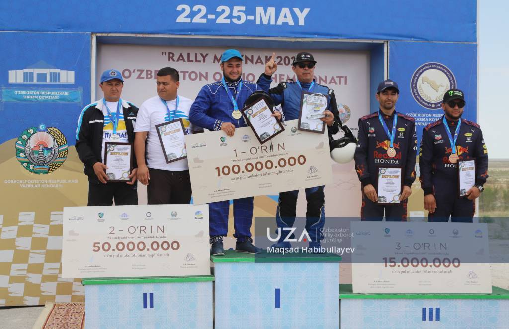 Призовые места среди водителей багги завоевали Хуршид Ганиев из Джизакской области, Равшан Кабилов из Сырдарьинской области и Ильхом Ахмедов из Андижанской области. Богдан Цатурян из Навоийской области, Бекзод Халимбоев из Бухарской области, Бегарис Айтбаев из Республики Каракалпакстан победили в заезде на мотоциклах с объемом двигателя до 125 см3, а Джасурбек Саматов и Бахтиёр Ахмедов из Бухарской области и Адхам Темиров из Навоийской области – на мотоциклах с объемом двигателя до 500 см3.