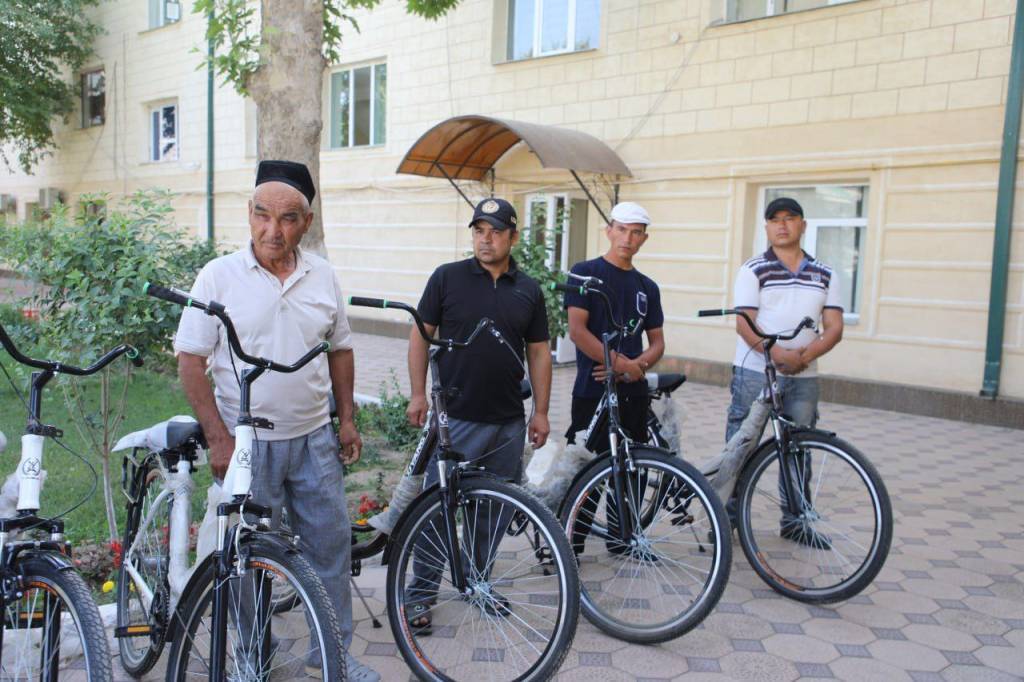 В честь 5 июня – Всемирного дня окружающей среды – 8 работникам Сурхандарьинской области, неустанно трудящимся в службе благоустройства и санитарии, были вручены велосипеды – подарок Министерства экологии, охраны окружающей среды и изменения климата.