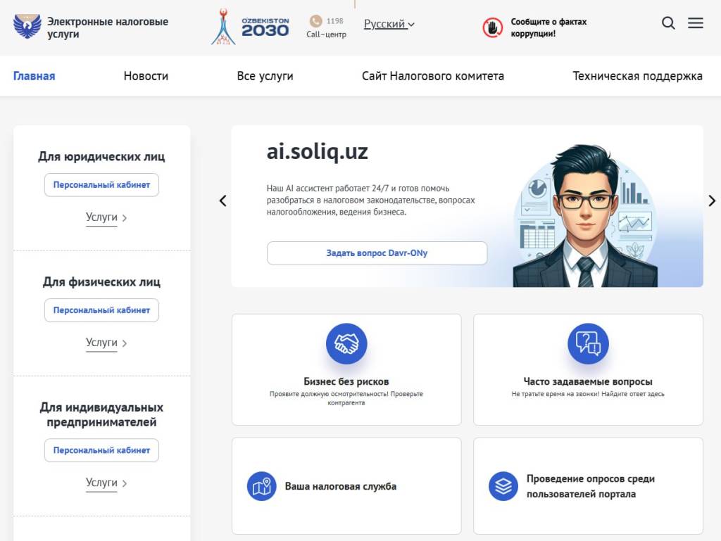 Налоговый комитет Республики Узбекистан сообщил о сбое в системе электронных налоговых услуг (my3.soliq.uz).